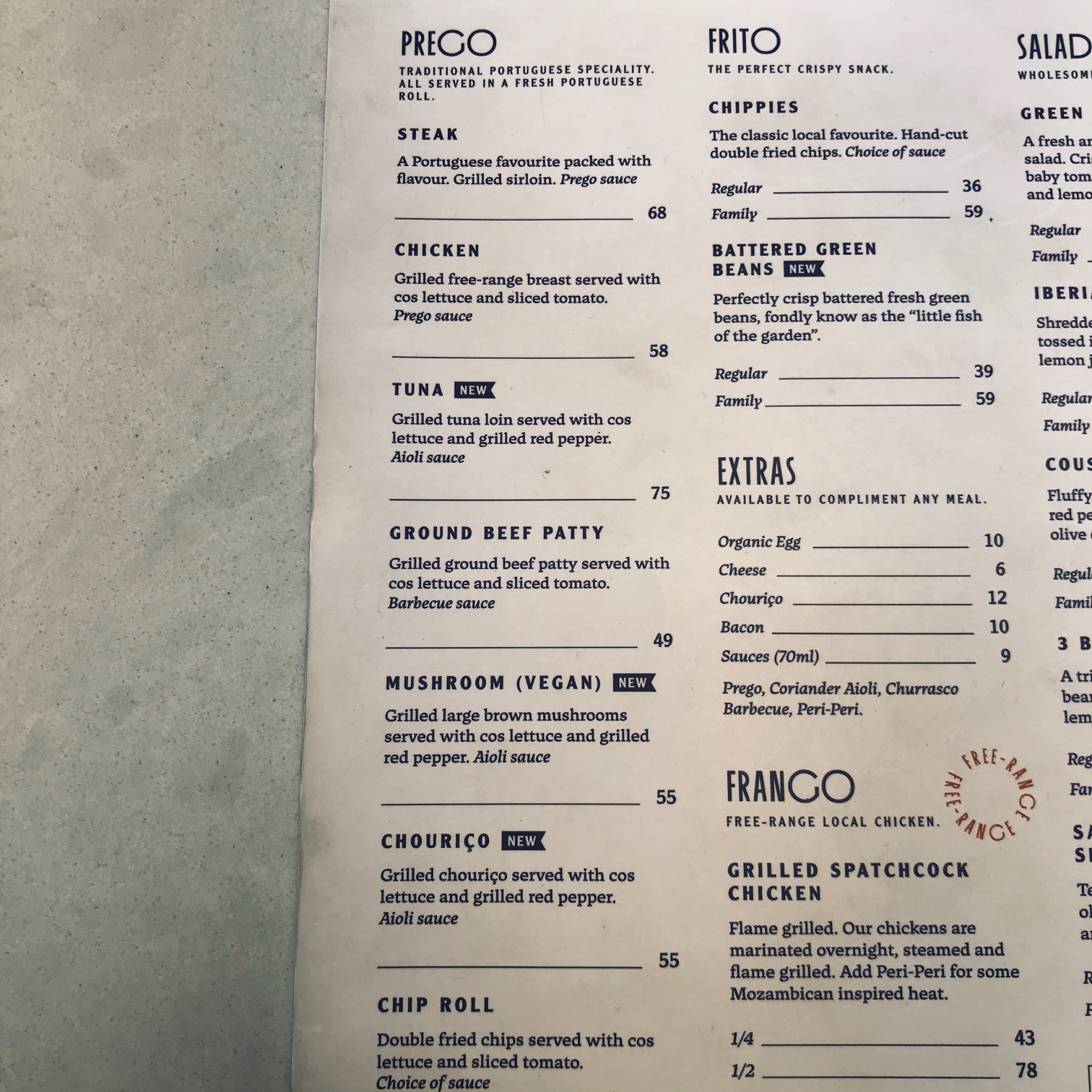 Fabrica Do Prego is one of the outside stores situated at the Artem centre in Sea Point. I will forever think of that centre as Adelphi but that’s also just giving my age away. Fabrica Do Prego is literally a five minute drive from home, so the chances of me returning with a fairly warm bag of food was good. Prego naturally means Prego Sauce, which naturally means flavour. I was hungry and after thrusting my phone into Nic’s face while he was trying to hold a squirming toddler in his one arm and soldier lift a five year old onto his shoulder… The orders were finally taken and I was on my way…