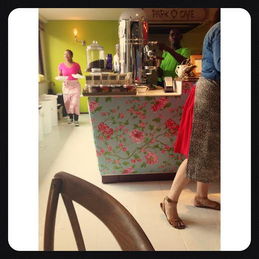 Park Café is tucked away in the The Parks Centre, Corner Wells & Jan Smuts Avenue. It sits smack bang in the middle of the centre – on an astroturf surface, with brightly coloured bunting, white tables with roses & display cabinets, just looking all sorts of lovely really. The café is owned & run by sisters, Vicky Ross & Lexi Reckling, who also own the adjacent nail salon, Polish Nail Spa (cake & pretty nails – clever).