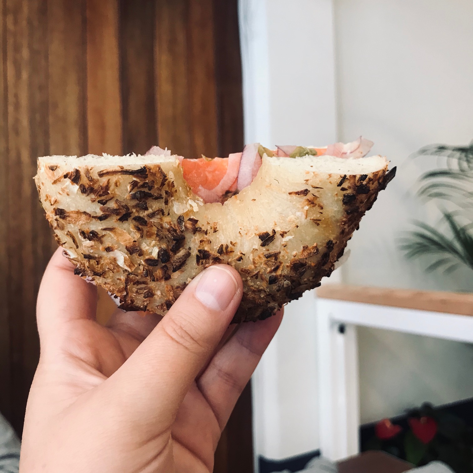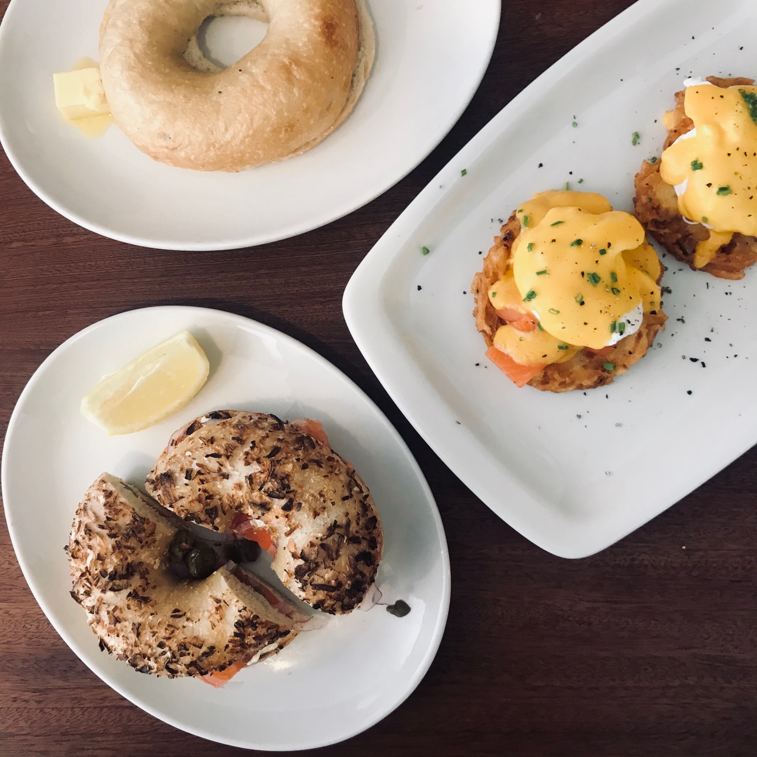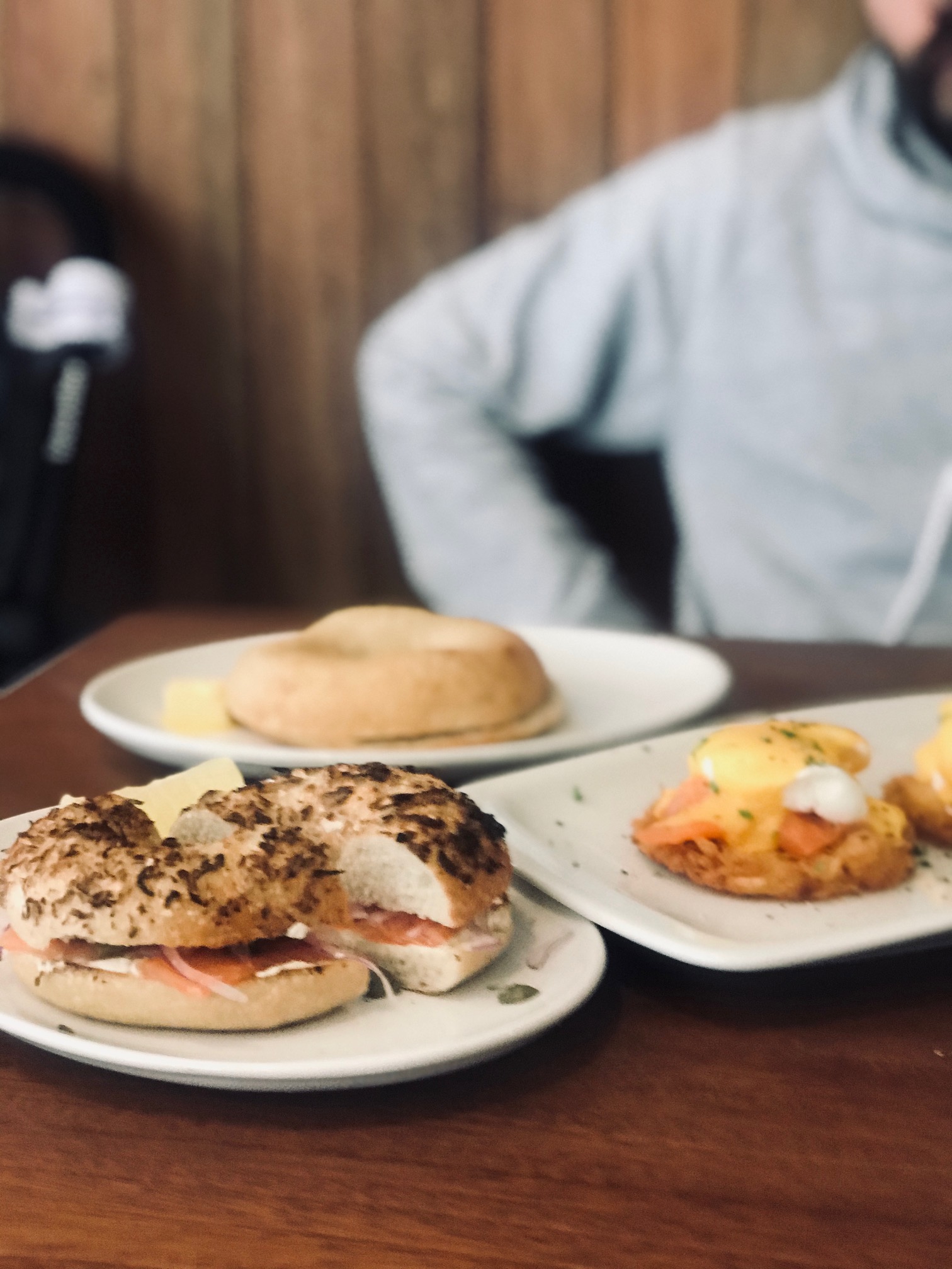 - Ash and myself: A Smoked Salmon Bagel – smoked salmon, cream cheese, red onions and capers on an onion bagel.