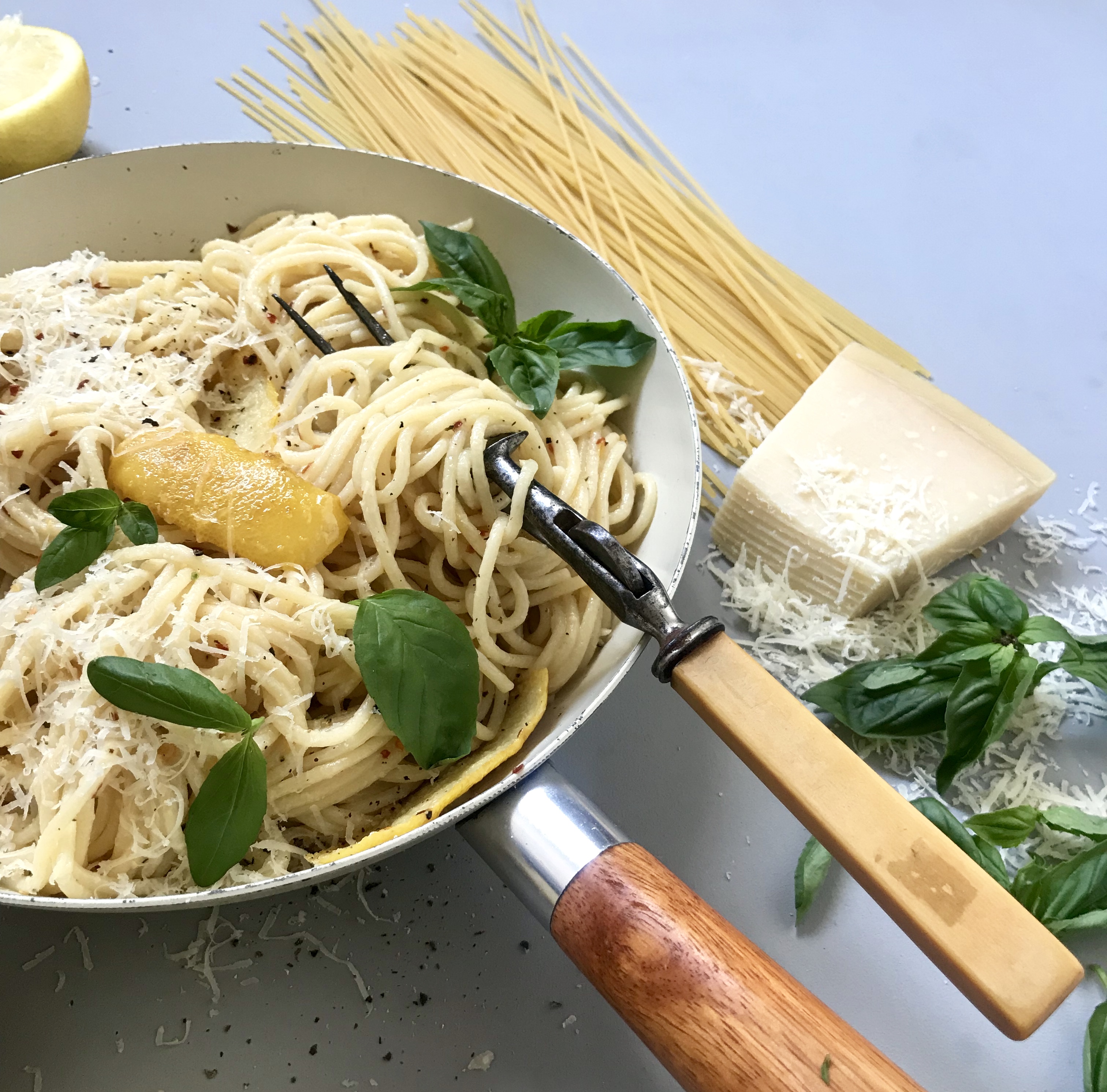 Winter is here. It’s cold and it’s wet and it’s most definitely here. BUT. One good thing about the chilly season is that here in South Africa, that means it’s CITRUS SEASON! And anybody who knows me, knows I’m the biggest lover of lemons. The biggest. Anything tart, sour, zingy and zesty is a big yes in my culinary books. So with that knowledge, it meant my next post using Food Lover’s Market ingredients was a no brainer – hello LEMONS. More specifically, hello to my insanely easy, incredibly delicious, super zesty Lemon Spaghetti. This dish can be as cheap as chips or as posh as the grandest nosh, it’s up to you how deep you want to dig into your pockets. I would usually suggest you go and make yourself a cup of tea while reading this recipe but it is so ridiculously quick and easy, there won’t be time for any of that.