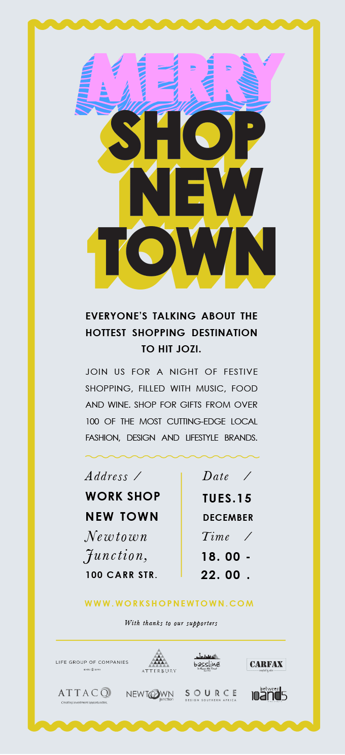 My ultimate point…. Get to Work|Shop|New|Town on the 15th of December – it revolves around all things Christmas. Shopping hits a new local level & flavour. The night will be filled with music, fashion, FOOD & WINE, with over 100 South African lifestyle, design & fashion brands present.